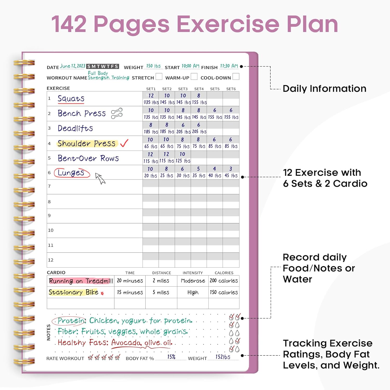 Track Your Workouts – Stay organized and record your gym workouts with this comprehensive fitness planner. It provides dedicated sections to log exercises, sets, reps, and weights, allowing you to monitor your progress over time.