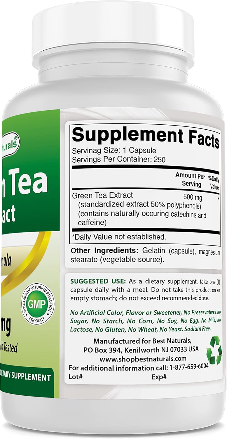 Best Naturals Green Tea Extract 500 mg 250 Capsules