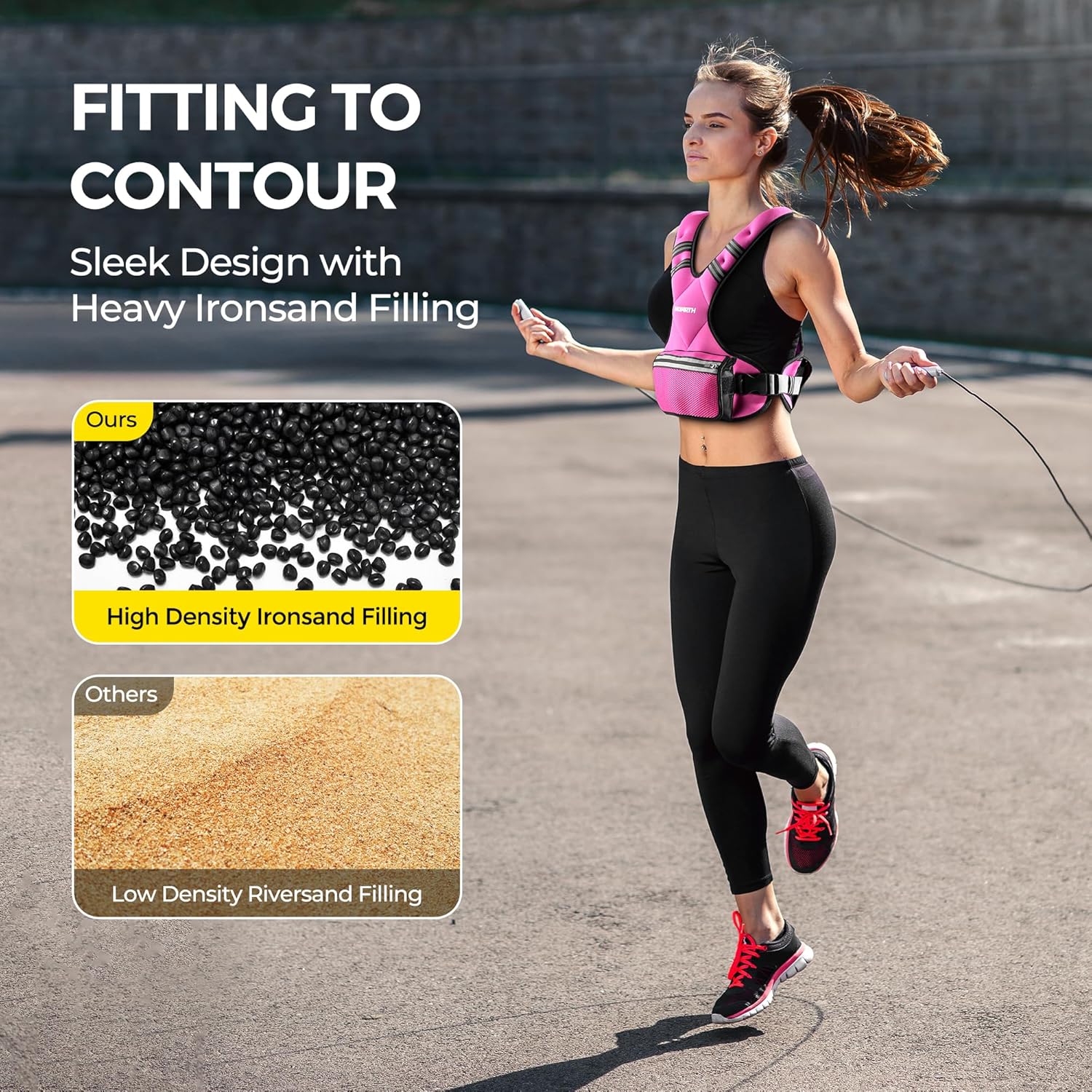 DURABLE & COMFORTABLE: Crafted from soft, high-quality neoprene upper material, and filled with high-density iron sand, our adjustable weighted vest combines long-lasting durability with comfort. The materials are processed with active charcoals to remove the smell. Perfect for every exercise from yoga poses to kickboxing, light jogging to aerobatic cycling, this vest can handle it all.