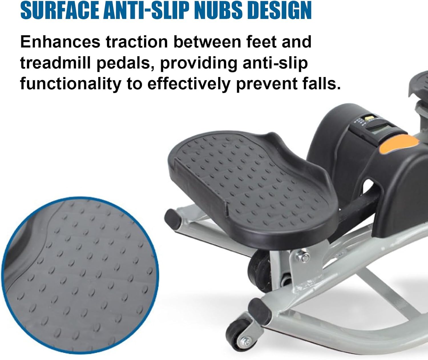 BUILT-IN LCD MONITOR FOR TRACKING:Stay on top of your goals with the rocking stepper’s digital display tracking time, steps, and calories burned. Perfect for quick 15-minute workouts and consistent progress monitoring